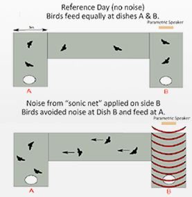 Using a "sonic net" to deter pest bird species: excluding European starlings from food sources by disrupting their acoustic communication.